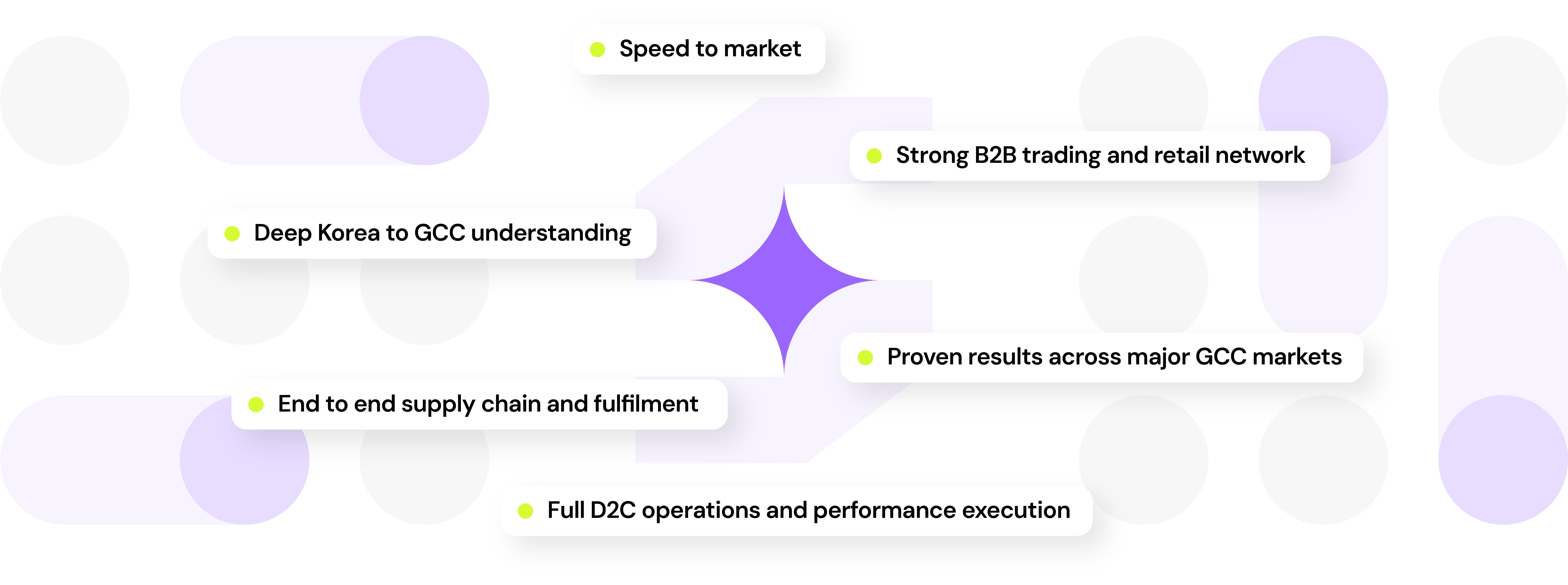 Our model combines B2B channel expansion, online retail, D2C execution, and full operations. This makes the GCC more accessible, more predictable, and more profitable for Korean brands.